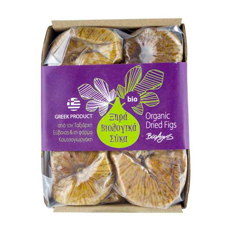 Ces figues blanches de l'ile grecque d'Eubée sont produites à Kimi suivant les principes de l'agriculture biologique. Récoltées à la main au mois d'Août au sommet de leur maturité, elles sont ensuite placées dans des caisses en bois et sèchent naturellement au soleil et au vent qui souffle à cette période sur l’Égée. Contrairement au séchage au four, cette méthode traditionnelle de séchage permet de conserver intactes toutes les saveurs et toute la valeur nutritive des fruits en même temps qu'elle les conserve moelleuses. Présentées en petite barquette de 250 g, ces figues sèches biologiques constituent une réserve d'énergie naturelle et de vitamines faciles à transporter et disponibles à tout moment.