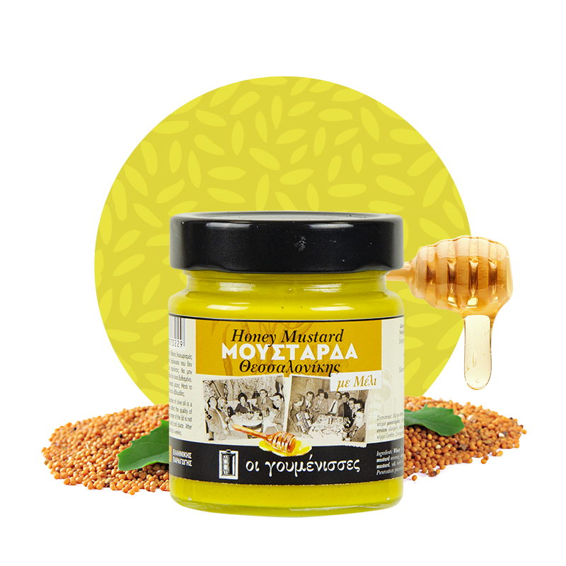 On le sait peu mais la région grecque de Macédoine Centrale est considérée comme le cœur de la production agricole grecque. Sa cuisine est de ce fait d'une grande richesse en raison de sa position géographique qui la place à la croisée de diverses influences culinaires : baignée par les influences byzantines, ottomanes et méditerranéennes, sa gastronomie offre une palette de saveurs où les épices rencontrent la fraîcheur des produits locaux ; un métissage qui différencie cette gastronomie de celle du reste de la péninsule. Il faut parcourir les allées du célèbre marché Modiano Kapani, véritable cœur battant de la ville pour avoir un échantillon vivant de cette richesse culinaire. Parmi les étals, on trouvera à n'en pas douter la fameuse moutarde traditionnelle de Thessalonique, secret d'une taverne bien connue du vieux Thessalonique ; la moutarde préférée des visiteurs de la foire internationale qui se déguste avec la célèbre saucisse accompagnée de bière brune. La délicieuse moutarde traditionnelle de Thessalonique produite par GOUMENISSES est basée sur une recette découverte dans les cahiers de grand-mère Theopoula. Elle vous séduira par la profondeur de ses arômes soutenus par la douceur sucrée du miel . Elle accompagnera à merveille les saucisses, les boulettes de viande, les grillades, les brochettes et les sandwichs et sera parfaite pour préparer une vinaigrette !